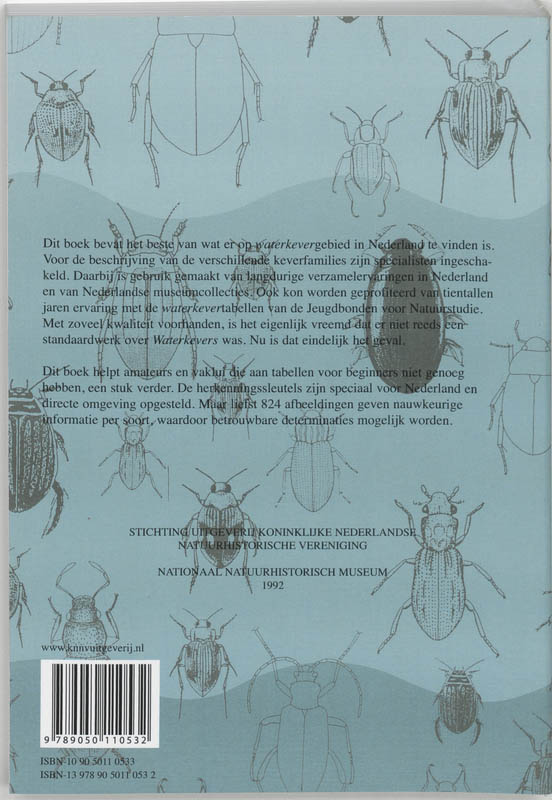 Het standaardwerk voor amateurs en vakmensen. Bevat determinatiesleutels waarmee je alle - meer dan 400 soorten - waterkevers van Nederland snel en betrouwbaar op naam kunt brengen. Inlcusief detailafbeeldingen per soort. - Alle soorten 'echte' waterkevers van Nederland determineren - Biologie, systematiek, naamgeving en verspreiding - Verzamelen, prepareren en bestuderen - Determinatiesleutels tot de genera en soorten - Detailtekeningen en zw/w electronenmicroscopische opnames Hiermee zijn alle soorten 'echte' waterkevers van Nederland in het volwassen stadium op naam brengen. Ook een paar Belgische en Luxemburgse soorten zijn opgenomen. Water, insecten, kevers, soorten, herkennen, determineren, taxonomie, hydrobiologie, aquatische ecologie, aquatische fauna, entomologie, waterkwaliteit, waterkwaliteitsbeheer, macrofauna, Nederland, Belgie