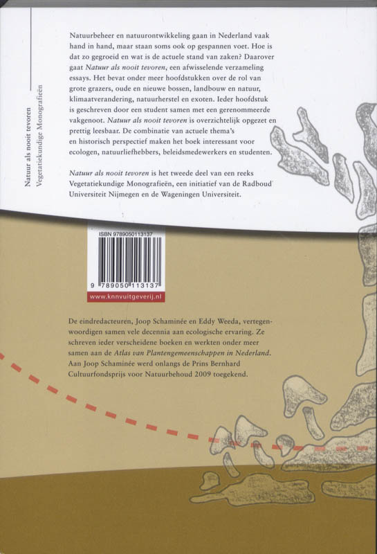 Beschouwingen over natuurbeheer in Nederland. Natuur en natuurontwikkeling gaan in Nederland vaak hand in hand. Hoe is dat in het verleden zo gegroeid en wat zijn de actuele ontwikkelingen? Daarover gaat dit boek, een afwisselende verzameling essays over onder meer de rol van grote grazers, oude en nieuwe bossen, landbouw en natuur, klimaatverandering en exoten. De combinatie van actuele thema's en historisch perspectief maken het boek interessant voor ecologen, natuurliefhebbers en studenten. Dit boek is het 2e deel van een reeks Vegetatiekundige Monografieen, een initiatief van de Radboud Universiteit Nijmegen en Universiteit van Wageningen. Joop Schaminee en Eddy Weeda, vertegenwoordigen samen vele decennia aan ecologische ervaring. Ze schreven ieder diverse boeken en werkten eerder samen aan de Atlas van plantengemeenschappen in Nederland. Onderwerpen: natuur, natuurontwikkeling, natuurbeheer, natuurbeleid, Nederland, vegetatiekunde, ecologie, landbouw, economie