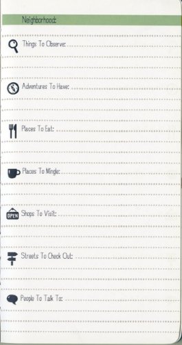 This colorfully illustrated, guided travel journal encourages users to explore the easily overlooked and wonderful everyday details encountered while traveling, whether near or far away. Packed with unique and fulfilling journeys that can be undertaken in any city, as well as prompts to record every whimsical discovery, each page is a surprise. Other features include: plenty of space to capture addresses, itineraries, reviews, and tips from locals; a reference section with time zones, measurements, and other relevant information; graphic pages for note taking; and a back pocket for collecting ephemera. Filled with appealing illustrations and unexpected inspirations, this quirky journal is sure to bring out the adventurer in every traveler.