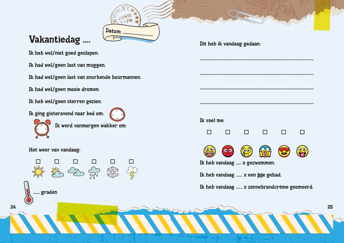 Verzamel al je avonturen en vakantieherinneringen in dit boek door te strepen, schrijven, kleuren, aanvinken, alles mag!