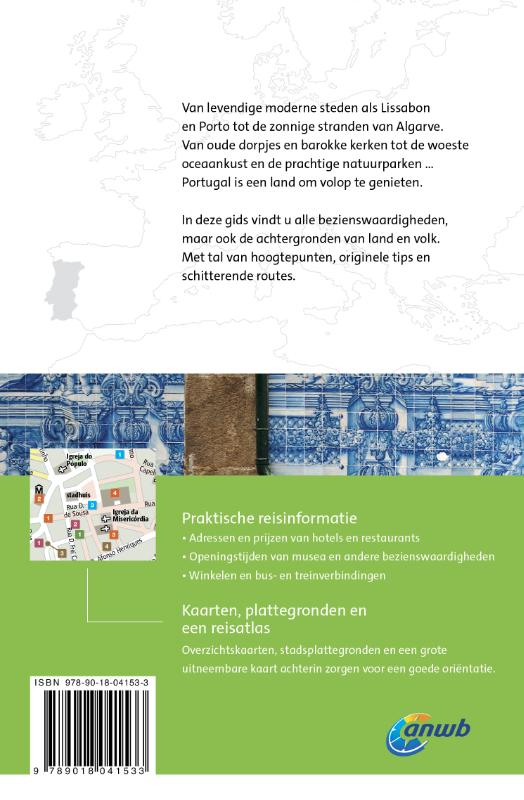 De uitgebreide reisgids Portugal telt meer dan 400 pagina's boordevol hoogtepunten, originele tips, schitterende wandelroutes en alles over de achtergronden van land en volk. Daarnaast alle praktische informatie zoals openingstijden van musea, tips voor overnachtingen en vervoerstijden. Inclusief stadsplattegronden, overzichtskaarten en achterin een uitneembare kaart. Kortom: een onmisbare ANWB gids voor een geweldige rondreis door Portugal!