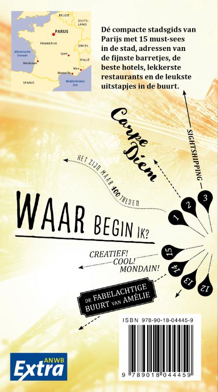 ANWB Extra reisgids Parijs – Frankrijk Beleef Parijs met de compleet vernieuwde reisgids ANWB Extra Parijs! Parijs is wel omschreven als de ‘stad van de honderd dorpen’, waarmee wordt bedoeld dat iedere stadwijk (quatier) geheel op zichzelf staat. Met de meeste sterrenrestaurants ter wereld, de vele groene parken en prachtige musea is Parijs een perfecte bestemming voor een weekendje weg. De ANWB Extra reisgids Parijs biedt naast diverse routes door de stad en veel praktische tips over hotels en vervoer ook 15 inspirerende bezienswaardigheden die je tijdens je citytrip niet mag missen. Beklim de middeleeuwse Notre Dame, bekijk de moderne kust van het Centre Pompidou, of ga uit tot in de kleine uurtjes op de Rue Oberkampf. Deze kleine reisgids past gemakkelijk in de tas en heeft een handige uitneembare kaart met daarop de beste tips voor overnachten, winkelen, eten en drinken en uitgaan. ANWB Extra is de succesvolste reisgidsenserie van Nederland! Met meer dan 100 gidsen verkocht biedt deze serie een reisgids voor nagenoeg iedere denkbare bestemming.