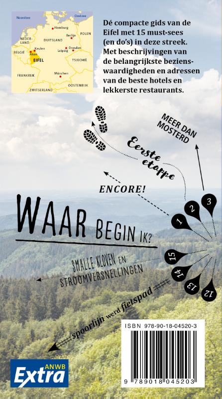 ANWB Extra reisgids Eifel - Duitsland Beleef Eifel met de compleet vernieuwde reisgids ANWB Extra Eifel! Tussen Aken, Mayen en Bitburg ligt een van de dunst bevolkte gebieden van Duitsland. Met een uitgebreid net van wandel- en fietspaden en een grote variatie in het landschap is het een perfecte streek voor een week fietsen of wandelen. De ANWB Extra reisgids Eifel biedt naast veel praktische tips over campings, vakantiehuizen, hotels en vervoer ook 15 inspirerende bezienswaardigheden die je niet mag missen. Beklim de Dom van Aken, wandel tussen de wijnstokken via de Rotweindwanderweg (rode wijn wandelpad), shop je portemonnee leeg in de outletwinkels van Bad Münstereifel of beleef het hele jaar door kerst in het burchtstadje Kronenburg. Deze kleine reisgids past gemakkelijk in de tas en heeft een handige uitneembare kaart met daarop de beste tips voor overnachten, winkelen, eten en drinken en uitgaan. ANWB Extra is de succesvolste reisgidsenserie van Nederland! Met meer dan 120 gidsen biedt deze serie een reisgids voor nagenoeg iedere denkbare bestemming.Reviews