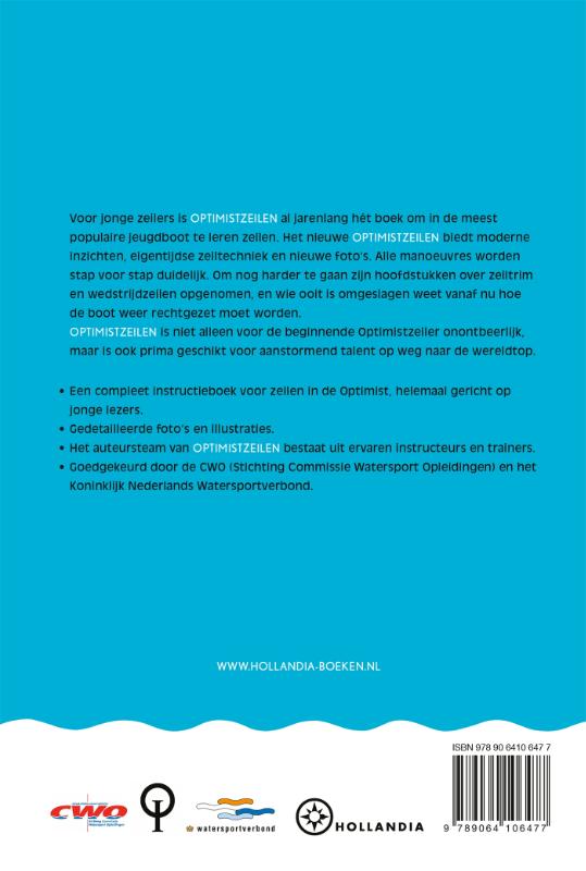 Voor jonge zeilers is 'Optimist zeilen' al jarenlang hét boek om in de meest populaire jeugdboot te leren zeilen. Dit praktische instructieboek biedt zowel moderne inzichten en eigentijdse zeiltechniek als nieuwe foto's. Alle manoeuvres worden stap voor stap uitgelegd. Voor wie nog harder wil gaan, zijn hoofdstukken over zeiltrim en wedstrijdzeilen opgenomen, en iedereen die ooit is omgeslagen weet vanaf nu hoe de boot weer rechtgezet moet worden. 'Optimist zeilen' is niet alleen onontbeerlijk voor de beginnende Optimist-zeiler, maar bovendien uiterst geschikt voor aanstormend talent op weg naar de wereldtop.