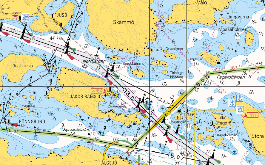 •Scale in maritime areas 1:60 000, inland waterways 1:50 000