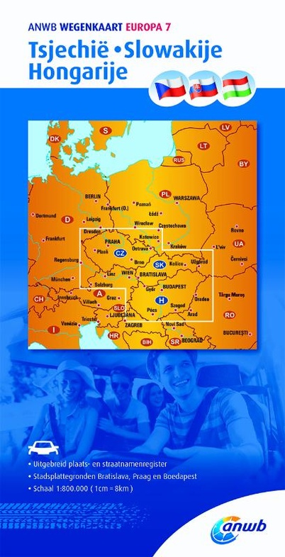 ANWB Wegenkaart Tsjechië • Slowakije • Hongarije Met de gedetailleerde en nauwkeurige ANWB Wegenkaart Europa 7: Tsjechië • Slowakije • Hongarije op schaal 1:800.000 (1 cm = 8 km), ga je goed voorbereid op autovakantie. De kaart bevat een uitgebreid plaats- en straatnamenregister en stadsplattegronden van Bratislava, Praag en Boedapest. In de legenda vind je uitgebreide toeristische informatie. De compacte wegenkaart is gemaakt van een stevig, duurzaam materiaal, waardoor hij veelvuldig kan worden in- en uitgevouwen. De ANWB Wegenkaart is al jaren de best verkochte wegenkaart in Nederland. Met meer dan 65 kaarten is er een kaart voor bijna elke bestemming.Reviews