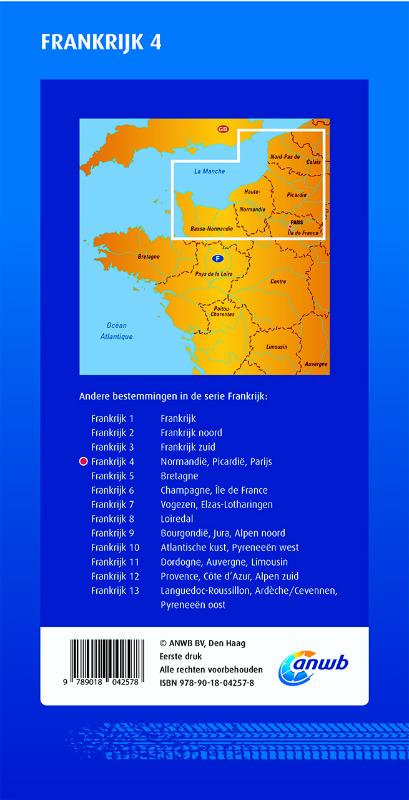 ANWB Wegenkaart Normandië, Picardië, Parijs Met de gedetailleerde en nauwkeurige ANWB Wegenkaart Frankrijk 4: Normandië, Picardië, Parijs op schaal 1:300.000 (1 cm = 3 km), ga je goed voorbereid op autovakantie. De kaart bevat een uitgebreid plaats- en straatnamenregister en een stadsplattegrond van Parijs. In de legenda vind je uitgebreide toeristische informatie. De compacte wegenkaart is gemaakt van een stevig, duurzaam materiaal, waardoor hij veelvuldig kan worden in- en uitgevouwen. De ANWB Wegenkaart is al jaren de best verkochte wegenkaart in Nederland. Met meer dan 65 kaarten is er een kaart voor bijna elke bestemming.Reviews