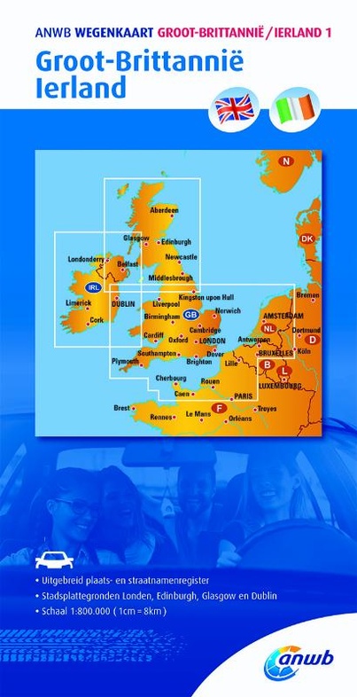 ANWB Wegenkaart Groot-Brittannië * IerlandMet de gedetailleerde en nauwkeurige ANWB Wegenkaart Groot-Brittannië * Ierland op schaal 1:800.000 (1 cm = 8 km), ga je goed voorbereid op autovakantie. De kaart bevat een uitgebreid plaats- en straatnamenregister en stadsplattegronden van Londen, Edinburgh, Glasgow en Dublin. In de legenda vind je uitgebreide toeristische informatie.