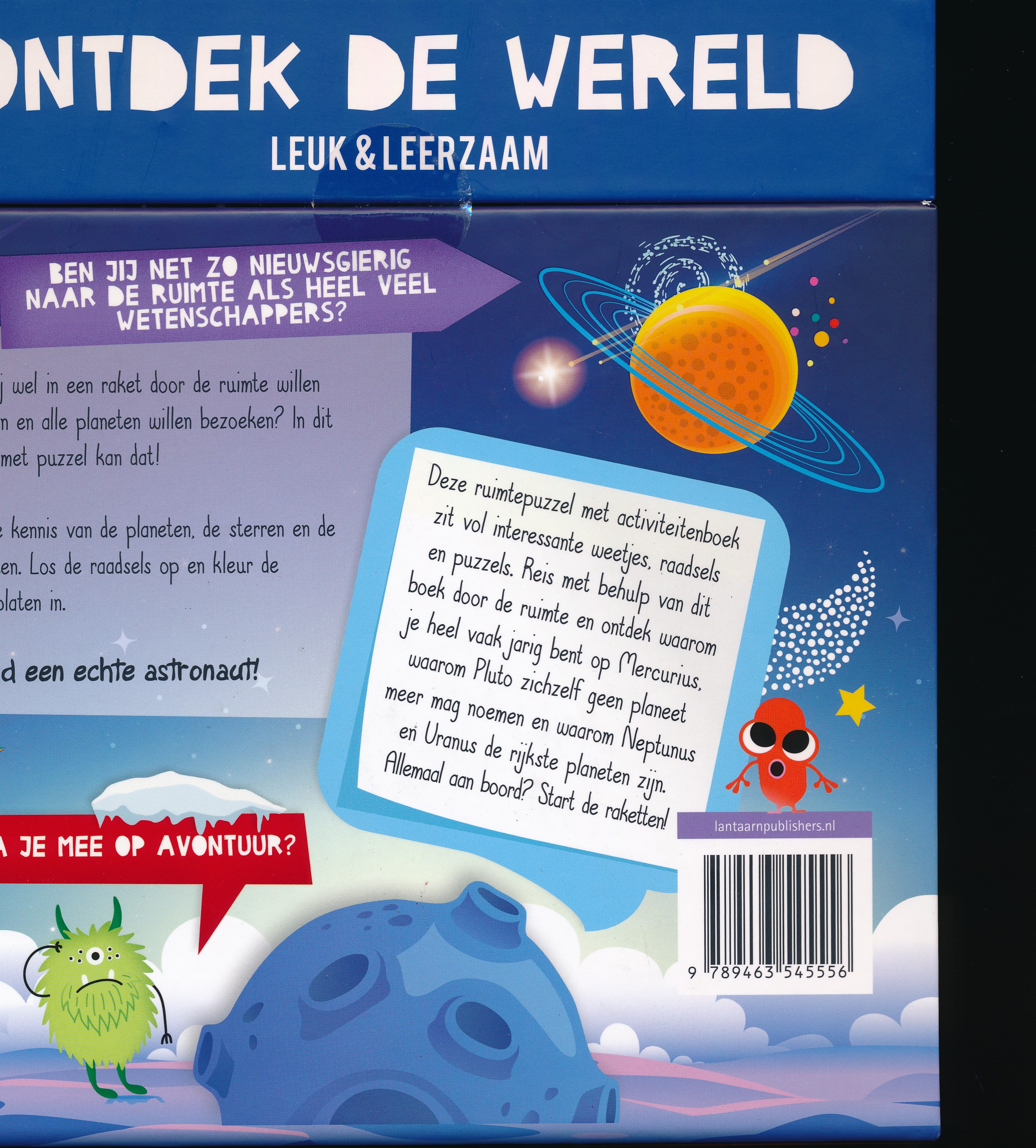 Word een echte astronaut! Zou jij wel in een raket door de ruimte willen vliegen en alle planeten willen bezoeken? In dit boek kan dat! Test je kennis van de planeten, de sterren en de kometen. Los de raadsels op en kleur de kleurplaten in. Deze ruimtepuzzel met activiteitenboek zit vol interessante weetjes, raadsels en puzzels. Reis met behulp van dit boek door de ruimte en ontdek waarom je heel vaak jarig bent op Mercurius, waarom Pluto zichzelf geen planeet meer mag noemen en waarom Neptunus en Uranus de rijkste planeten zijn. Allemaal aan boord? Start de raketten!