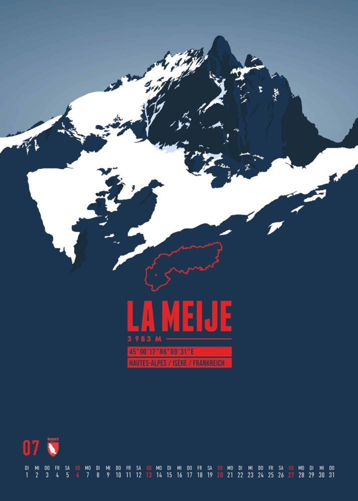Posterkalender mit den außergewöhnlichen Karten von Marmota Maps, zwölf handillustrierte Alpengipfel, gelungene Infografik für alle Fans der Berge