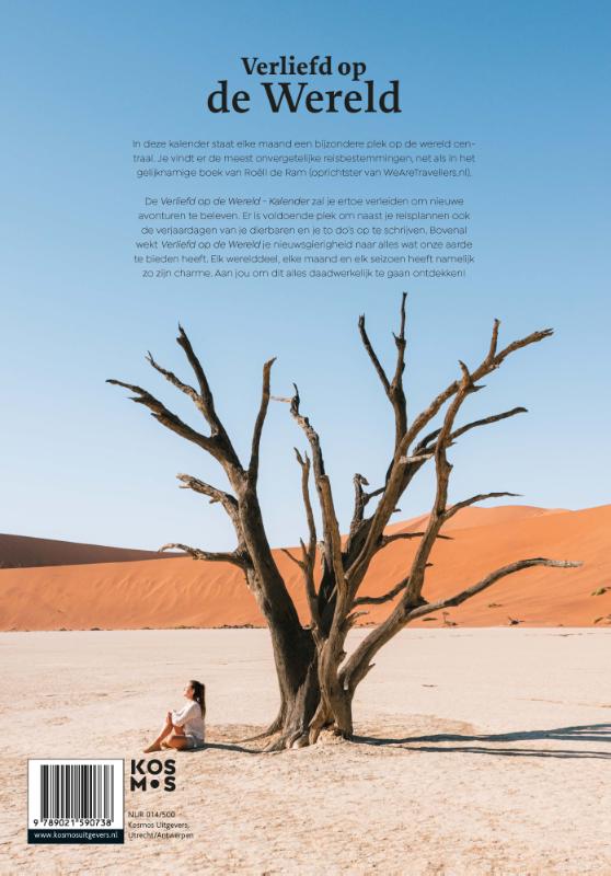 In de Verliefd op de wereld - kalender 2023 staat elke maand een bij zondere plek of activiteit centraal die je uitdaagt om zelf op ontdekkingsreis te gaan. Net als het gelijknamige boek van Roëll de Ram – oprichtster van de populaire reisblog WeAreTravellers.nl – bevat de kalender schitterende foto’s, inspirerende reisinformatie, praktische tips en voldoende ruimte voor eigen plannen en verjaardagen. Een ware verleiding om in 2023 de wijde wereld in te trekken.