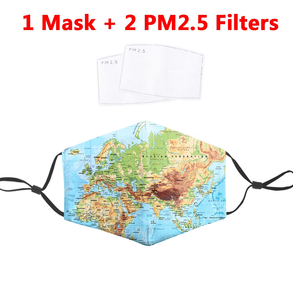 Als je dan toch een mondkapje moet dragen, is dit wel een hele leuke: een mooie print van een natuurkundige wereldkaart maakt het een kleurig, leuk en opvallend ding. Bijgeleverd worden twee extra filters.