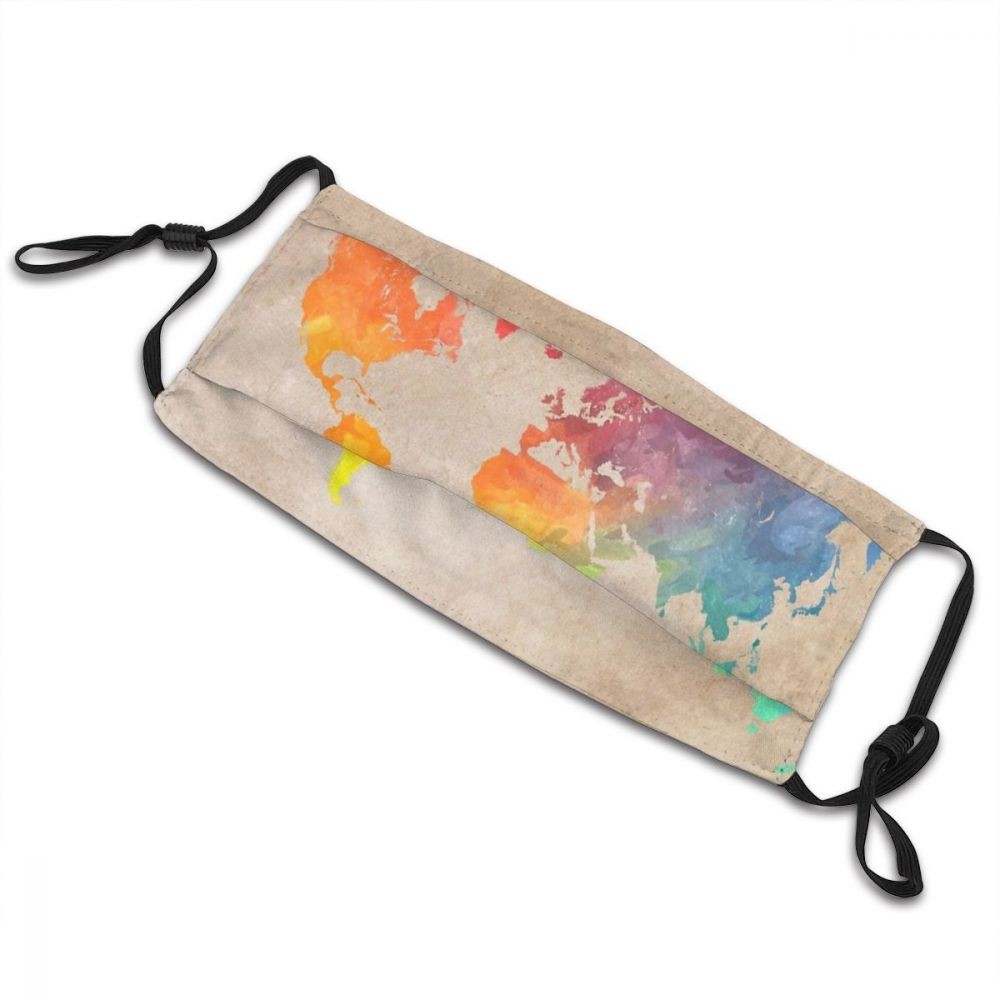 Mondkapje gezichtsmasker met wereldkaart bruin-roze (0423320378305)