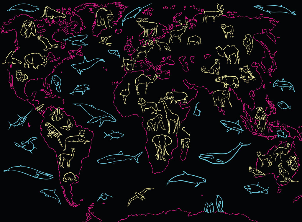 Legpuzzel Vrolijke dierenwereldkaart 100 XXL | Ravensburger (4005556136698)