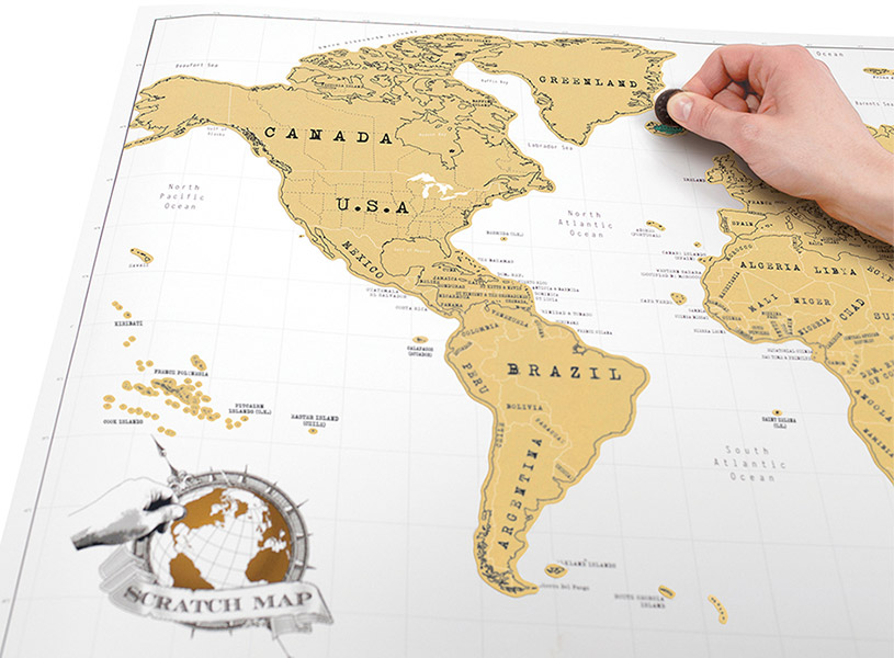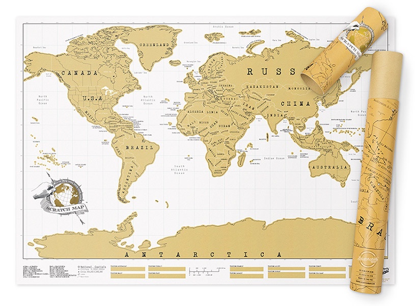 Scratch Map is brilliant! Its the perfect way to show off where you've been travelling while livening up your wall with a colourful world map. Scratch Map is a amazingly high quality, uber-massive wall map, featuring a gold top foil layer. Why? Because you get a unique, slick looking gold wall map to start with, and then scratch off all the places you've visited to reveal a whole new world below, featuring colour and geographical detail. The result is a totally unique and personalised world map. What a great gift. Comes packaged in a slick tube.