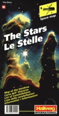 A map of the stars and constellations; depicting a view of the night sky as observed from either hemisphere. The constellations are labelled and indicated by subtle, fine lines which link the stars. The most well known and higher magnitude stars are labelled and other features such as nebulae and galaxies are also shown. Several inset astro-photographs of the better known nebulae and galaxies surround the main celestial maps. More detailed information about the constellations is given on the reverse.