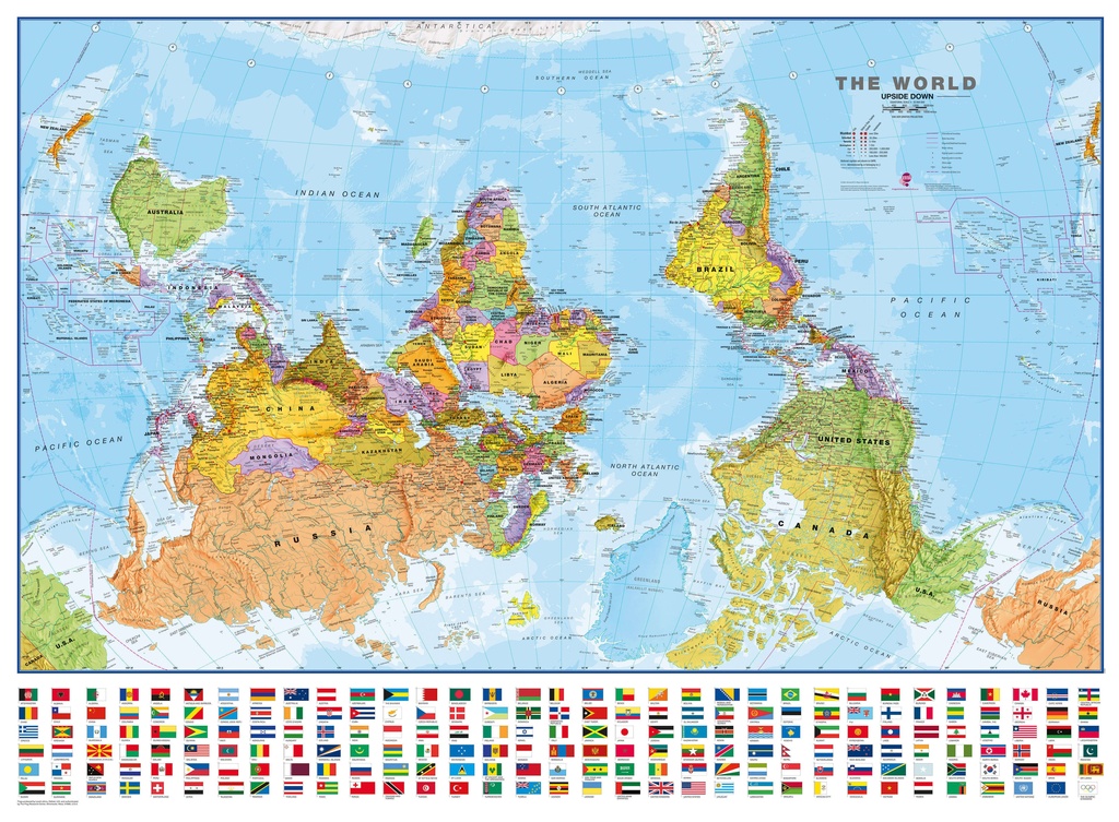 Wereldkaart Wereld upside down, 136 x 100 cm | Maps International (9781904892762)