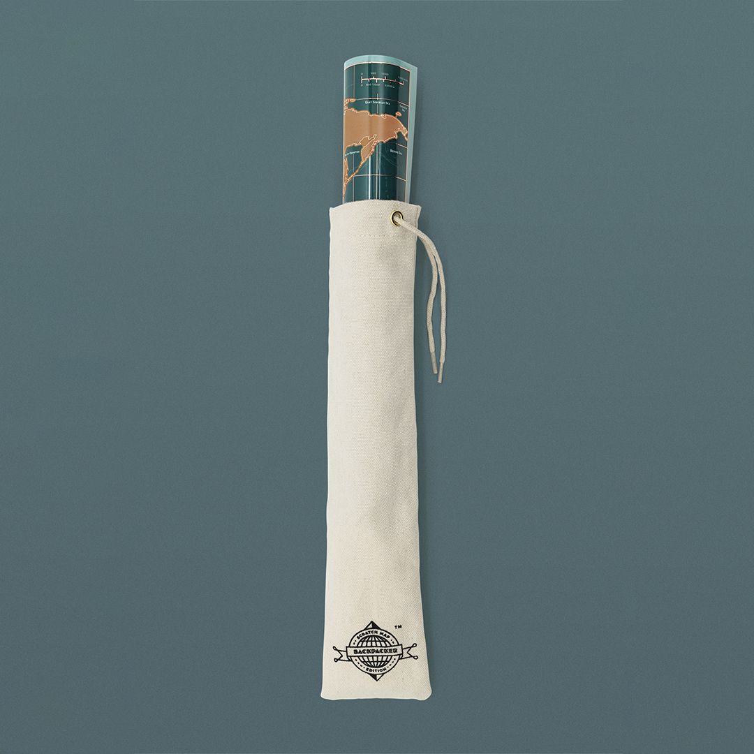Een bijzondere uitvoering van de gewone Scratch Map, geheel toegespitst op de wereldreiziger. Klein, maar met veel details, luxe uitgevoerd met een prachtige katoenen bewaarzak waar je het ook goed in kan meenemen. Krassen terwijl je de grens overgaat .... wat wil je nog meer!