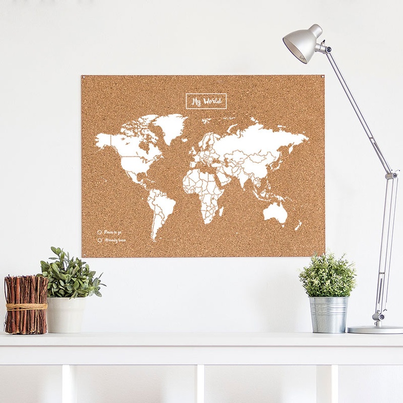 Wereldkaart van kurk Woody Map XL Wit | Miss Wood (8436563400070)