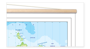 Deze kaart wordt gemaakt in drie delen - te groot om in 1 keer te fabriceren met kans op beschadigingen - die vervolgens zeer nauwkeurig aan elkaar worden geplakt. Daarna gaat er een coating overheen om de kaart geplastificeerd te maken. Een heel proces, maar het resultaat is prachtig! De blank houten stokken maken het geheel helemaal af: zowel onder als boven worden zij bevestigd en aan de bovenzijde zit een koord om de kaart op te hangen.