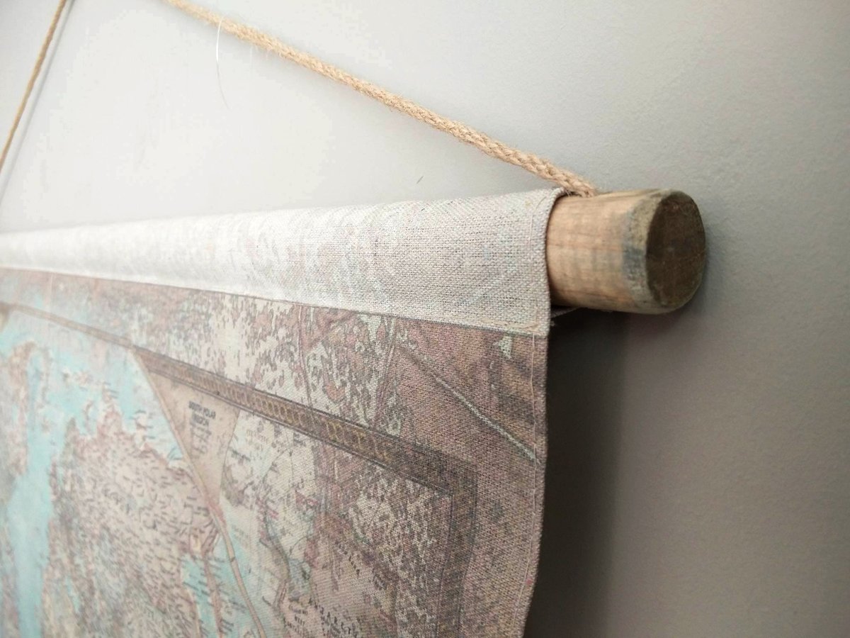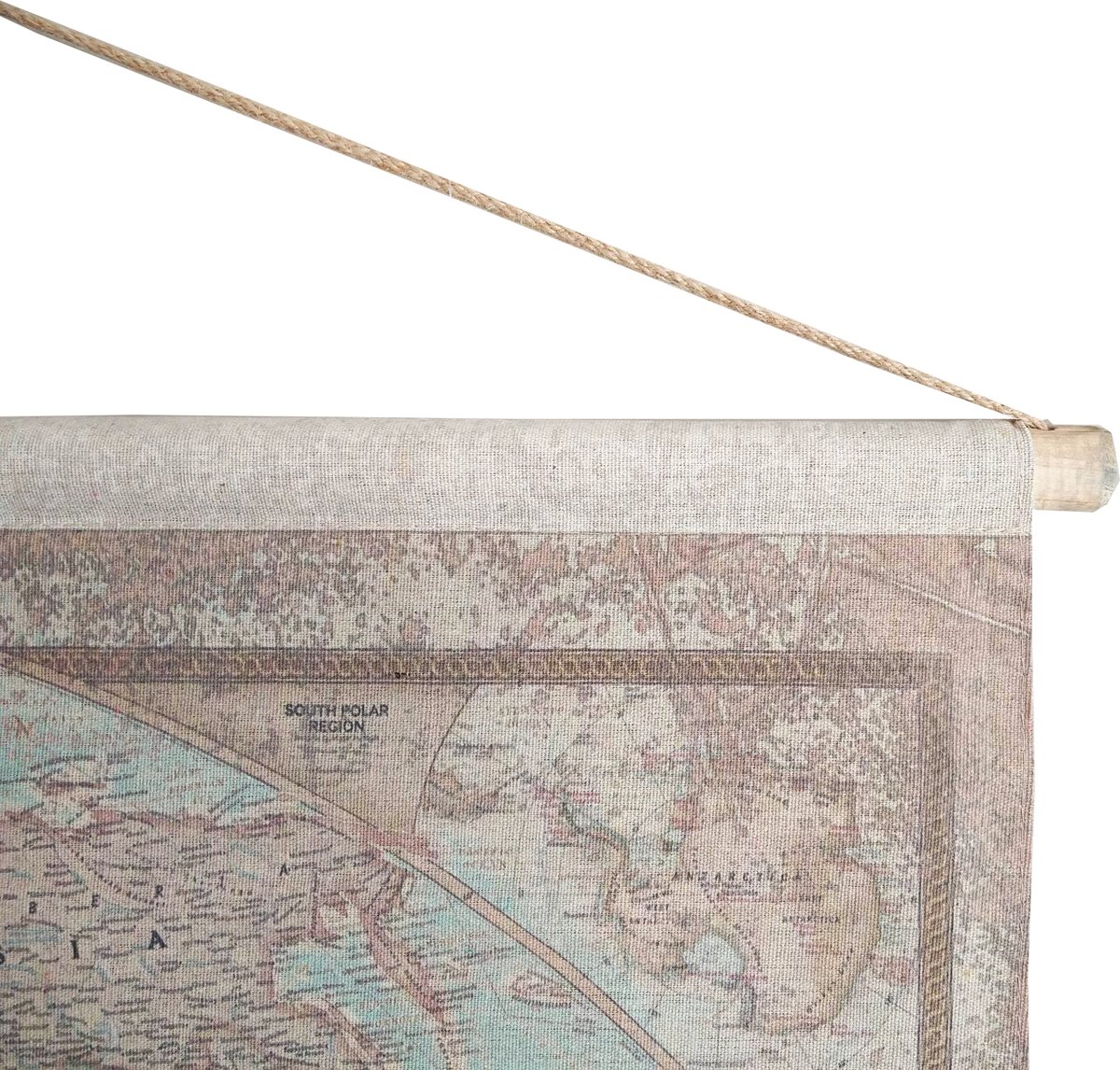 Wereldkaart op linnen met houten stokken | Van Manen (8713219332399)