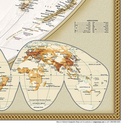Een prachtige, stijlvol gekleurde kaart - bruin, antieke kleurstelling - met een modern kaartbeeld. Alle landen staan er met grenzen en belangrijke steden keurig op, maar de nadruk ligt op de kleurstelling: deze is ‘ouderwets‘ en past goed in een klassiek interieur. Door het kleurgebruik is het reliëf van de bodem van oceanen goed te zien.