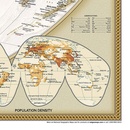 Een prachtige, stijlvol gekleurde kaart - bruin, antieke kleurstelling - met een modern kaartbeeld. Alle landen staan er met grenzen en belangrijke steden keurig op, maar de nadruk ligt op de kleurstelling: deze is ‘ouderwets‘ en past goed in een klassiek interieur. Door het kleurgebruik is het reliëf van de bodem van oceanen goed te zien.