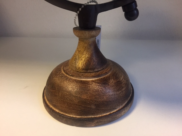 De globe heeft een doorsnede van 20 cm en is inclusief voet ongeveer 35 cm hoog.