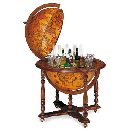 Een wereldbol voor drank; ook wel bekend als een barglobe, wereldbol-bar of globe bar.
