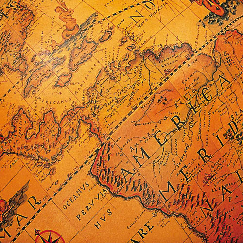 Dit kaartbeeld geeft een historische beeld van de wereld weer en de oceaan heeft een Bruin antieke kleur. De Antiekkleurige kaart kenmerkt zich door gebruik van perkament kleuren, de warme kleuren kenmerken het karakter van dit kaartbeeld.