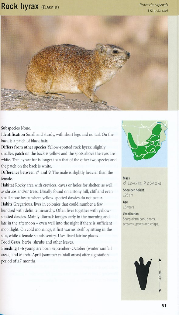 Easy-to-use and compact, this is the perfect pocket ID guide to mammals of the region. It covers some 120 mammals, from the smallest (bats, sengis and shrews) to the largest (lion, rhinoceros and elephant), as well as marine species, such as seals, dolphins and whales. Clear, full-color photographs and distribution maps. A must-have for tourists and nature-lovers alike. This authoritative guide offers concise information, clear images of each animal, distribution maps and illustrations of tracks and droppings. This colorfully illustrated guide offers concise information on key ID pointers, similar species, habitat, behavior, diet, reproduction, longevity, calls, occurrence and measurements. Clear images of each animal, distribution maps, silhouettes indicating size relative to humans and illustrations of tracks and droppings offer concise – yet detailed – information enabling quick and easy mammal ID.