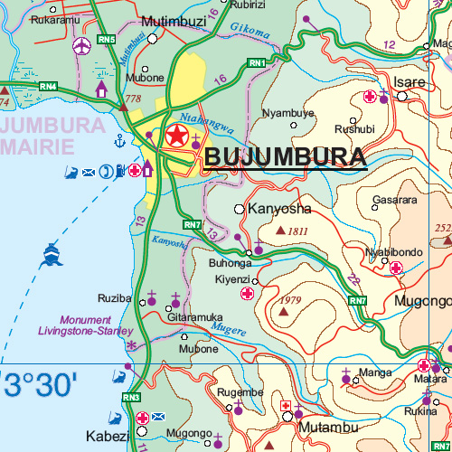 The two central African countries of Rwanda and Burundi are gradually returning to prosperity. They are both very interesting countries, scenically attractive, and relatively untouched by modernism. Both have suffered serious unrest in the past, but have moved on and are determined to have a bright and happy future. The people are marvelous; one can’t express in a brief paragraph the warmth and friendliness of the ordinary people of both countries. This is really a part of Africa everyone should visit. It’s a very special place, and I’m pleased to introduce the latest edition of an excellent map for two of my favourite places. As with past editions, this is actually two completely separate maps, with Rwanda on one side and Burundi on the other. There are two different covers, so the map can be displayed with either country’s name facing outwards. It also has our traditional spine listing for those retailers who store maps in drawers.