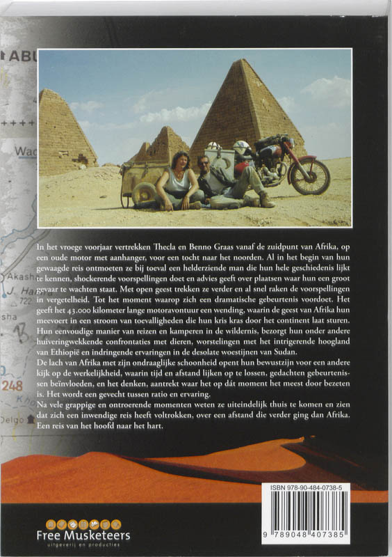 In het vroege voorjaar vertrekken Thecla en Benno Graas vanaf de zuidpunt van Afrika, op een oude motor met aanhanger, voor een toch naar het noorden. Al in het begin van hun gewaagde reis ontmoeten ze bij toeval een helderziende man die hun hele geschieenis lijkt te kennen, shockerende voorspellingen doet en advies geeft over plaatsen waar hun een groot gevaar te wachten staat. Met open geest trekken ze verder en al snel raken de voorspellingen in vergetelheid. Tot het moment waarop zich een dramatische gebeurtenis voordoet. Het geeft het 43,000 kilometer lange motoravontuur een wending, waarin de geest van Afrika hun meevoert in een stroom van toevalligheden die hun kris kras door het continent laat sturen. Hun eenvoudige manier van reizen en kamperen in de wildernis, bezorgt hun onder andere huiveringwekkende confrontaties met dieren, worstelingen met het intrigerende hoogland van Ethiopie en indringende ervaringen in de desolate woestijnen van Sudan.