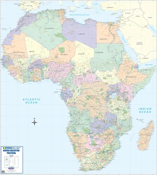 Wandkaart Africa executive Political 2-delig | 176 x 160 cm | MapStudio (9781776170180)