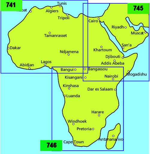 Zeer populaire kaart van een deel van Afrika voor overlanders en mensen die meerdere landen gaan bezoeken. Helder en overzichtelijk kaartbeeld met mooie kleuren. Schaduwgebruik laat de belangrijkste berggebieden zien.