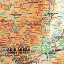 Mooie wegenkaart in prettige reliëfkleuren van Ethiopië. Met index en deelkaarten. Ook Eritrea, Somaliland en Djibouti staan op de kaart.