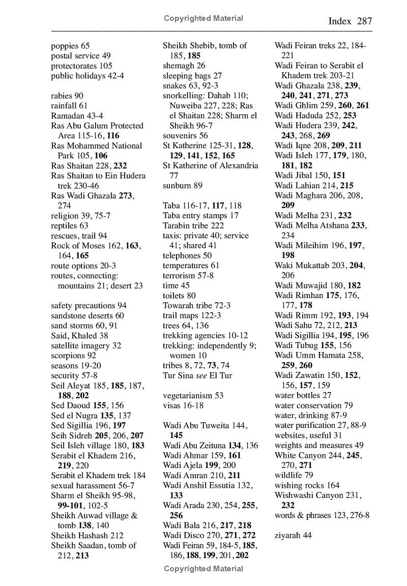 ❏ 74 detailed trekking maps - tricky junctions, places of interest. Comprehensive trail descriptions and GPS co-ordinates for classic treks and lesser-known routes. The best in the High Mountain Region (St. Katherine), Wadi Feiran and the Muzeina deserts.