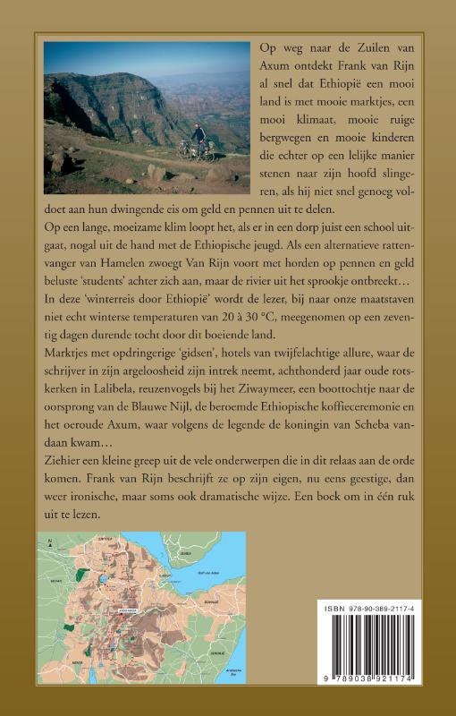 Op weg naar de Zuilen van Axum ontdekt Frank van Rijn al snel dat Ethiopië een mooi land is met mooie marktjes, een mooi klimaat, mooie ruige bergwegen en mooie kinderen die mooie stenen op een lelijke manier naar zijn hoofd slingeren, als hij niet snel genoeg voldoet aan hun dwingende eis om geld en pennen uit te delen. Op een lange, moeizame klim loopt het, als er in een dorp juist een school uitgaat, nogal uit de hand met de Ethiopische jeugd. Als een alternatieve rattenvanger van Hamelen zwoegt Van Rijn voort met horden op pennen en geld beluste 'students' achter zich aan, maar de rivier uit het sprookje ontbreekt...