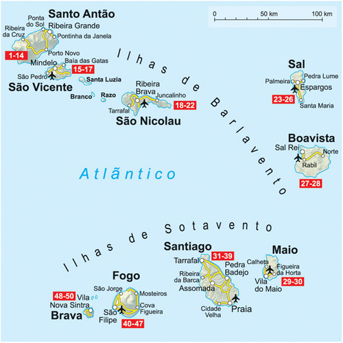 Bom Dia Cabo Verde - Willkommen auf den Kapverdischen Inseln! Nur rund sechs Flugstunden ist die Inselgruppe der Kapverden von Deutschland entfernt und doch liegt sie in einer anderen Welt. Hier ist das Wort Massentourismus noch ein Fremdwort, hier kann man auf eigenen Streifzügen noch so manch Neues entdecken. Und wer die Kapverden gesehen hat, den lässt der raue Charme dieser Inseln in der Weite des Atlantiks nicht mehr los: gewaltige Dünen- und Treibsandfelder, endlose Sandstrände, wilde Steilküsten, an denen sich die Wellen des Atlantiks tosend brechen, tief eingekerbte Täler und Schluchten, unwirklich kahle Hochebenen, immergrüne Nebelwälder, mächtige Vulkane oder kleine Oasen begeistern jeden Naturliebhaber.