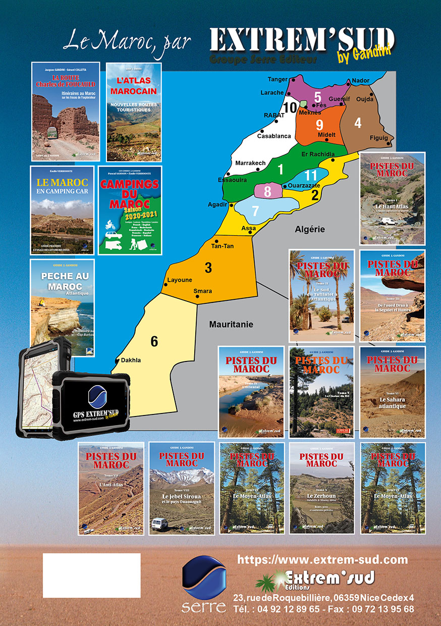 Le nouveau guide de Jacques Gandini vient de paraître. Avec Hoceine Ahalfi, ils ont exploré par le menu le jebel Sagho, cette magnifique région très sauvage du Sud Maroc, aux paysages époustouflants située à l'est de Ouarzazate et au sud de la vallée de l'oued Dadès. Interrompue par la crise sanitaire, la publication de ce onzième volume de la collection "Pistes du Maroc" rassemble 59 itinéraires totalisant 2500 kilomètres et 1100 waypoints.