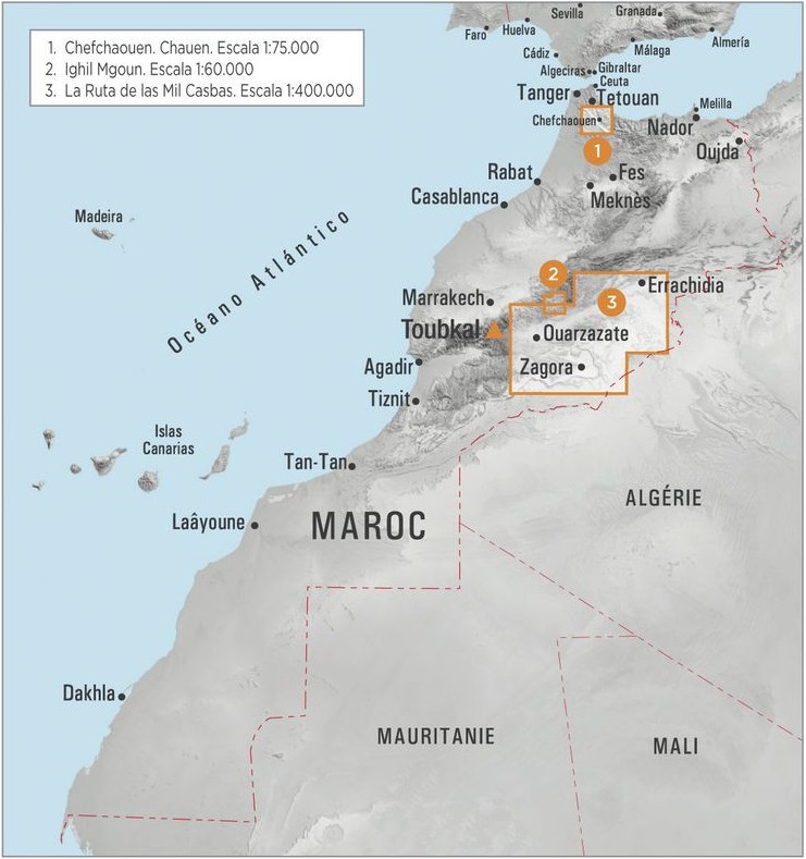 El Bour, Imlil, Oukaimeden, Tioudou, Bou, Iguenouane, Aksoual, Tiziane, Azrou n'Tamadoute, Adrar Iferouane, Tifidern, Takatert, Lago de Ifni, Akioud