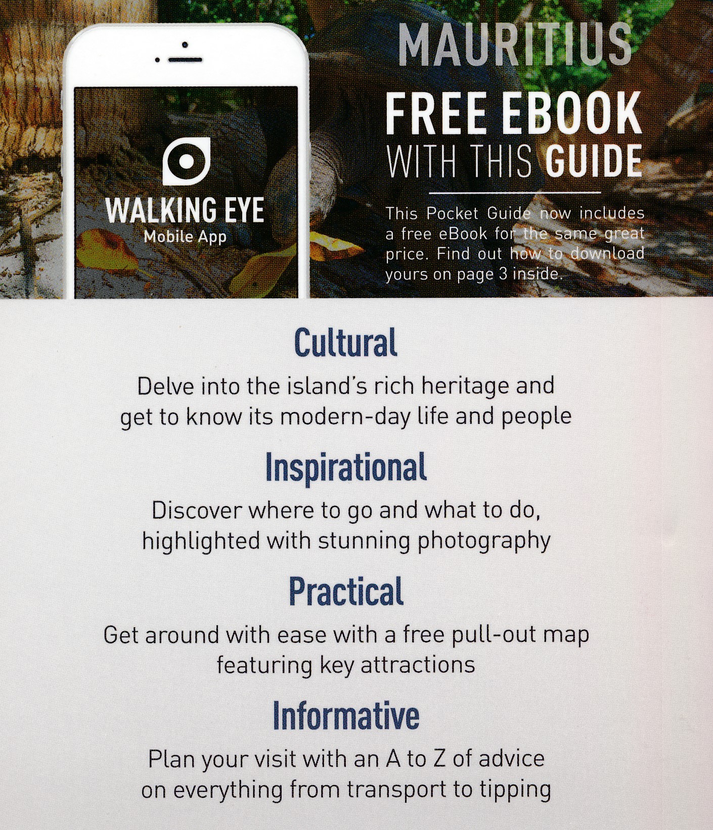 nsight Pocket Guides: ideal itineraries and top travel tips in a pocket-sized package. Now with free eBook, and a pull-out map. Plan your trip, plan perfect days and discover how to get around - this pocket-sized guide is a convenient, quick-reference companion to discovering what to do and see in Mauritius, from top attractions like Belle Mare Beach, to hidden gems, including Chamarel Waterfalls. - Compact, concise, and packed with essential information about Where to Go and What to Do, this is an ideal on-the-move companion when you're exploring Mauritius - Covers Top Ten Attractions, including Kestrel Valley and Eureka Mansion and Perfect Day itinerary suggestions - Offers an insightful overview of landscape, history and culture - Contains an invaluable pull-out map, and essential practical information on everything from Eating Out to Getting Around - Includes an innovative extra that's unique in the market - all Insight Pocket Guides come with a free eBook - Inspirational colour photography throughout - Sharp design and colour-coded sections make for an engaging reading experience About Insight Guides: Insight Guides is a pioneer of full-colour guide books, with almost 50 years' experience of publishing high-quality, visual travel guides with user-friendly, modern design. We produce around 400 full-colour print guide books and maps, as well as phrase books, picture-packed eBooks and apps to meet different travellers' needs. Insight Guides' unique combination of beautiful travel photography and focus on history and culture create a unique visual reference and planning tool to inspire your next adventure.