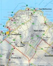 De berijdbare wegen zijn goed weergeven, zowel de hoofdwegen als provinciale en lokale wegen; wegnummers worden vermeld. Afstanden tussen plaatsen zijn in kilometers op de kaart ingetekend, daarnaast worden ook op belangrijke plekken benzinepompen gemarkeerd.