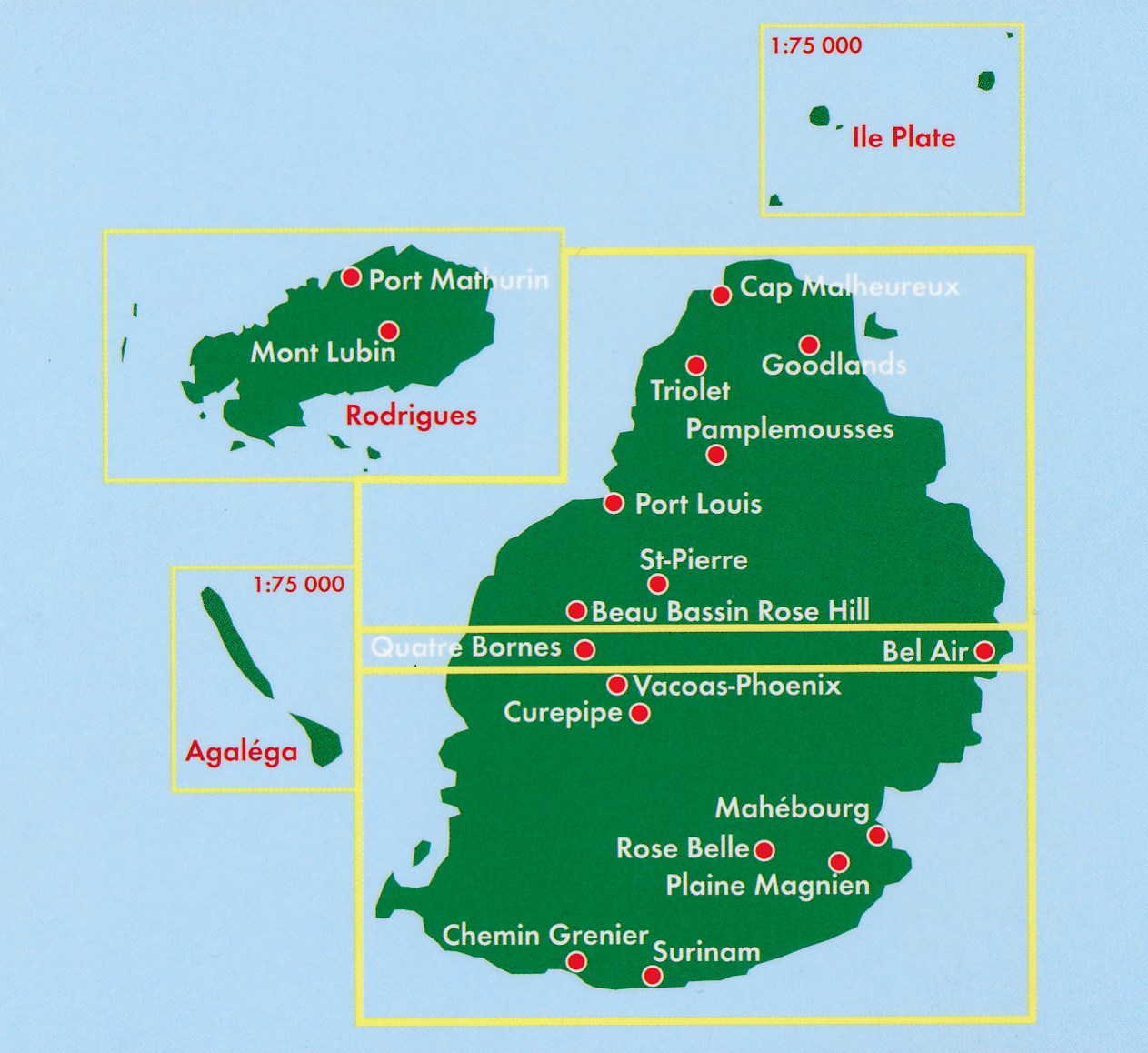 Plan your itinerary and travel indepdendantly with this Freytag & Berndt double-sided road and leisure map of Mauritius and Rodrigues. The topography is depicted using colour shading and plenty of spot heights.