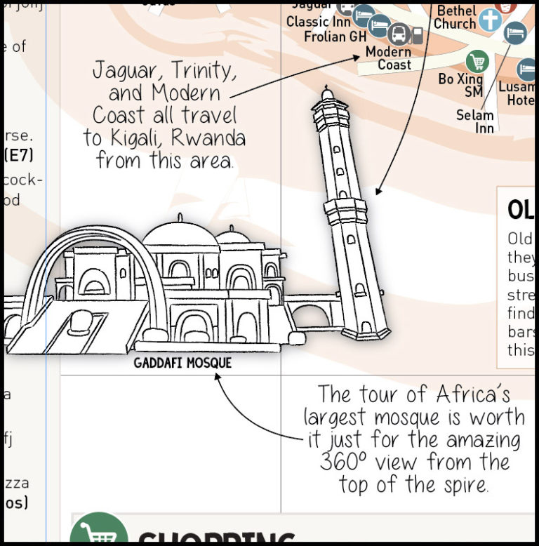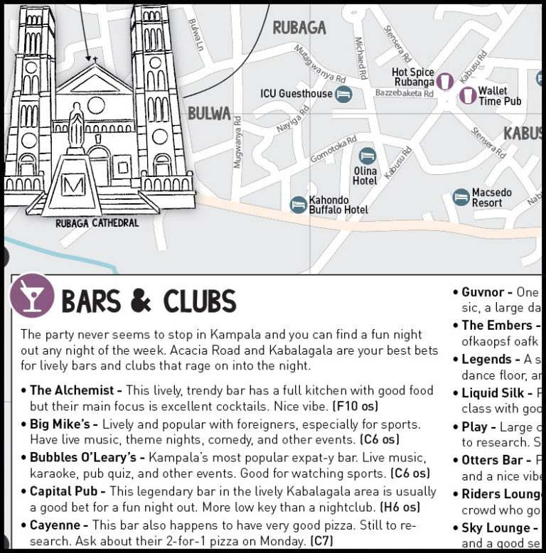 Kampala is a amazing, vibrant city and it has made for a great map! It has all of the usual information, points of interest, tips, neighbourhood guides, suggestions for what to see and do, plus all of the usual little cartoons and fun extras.