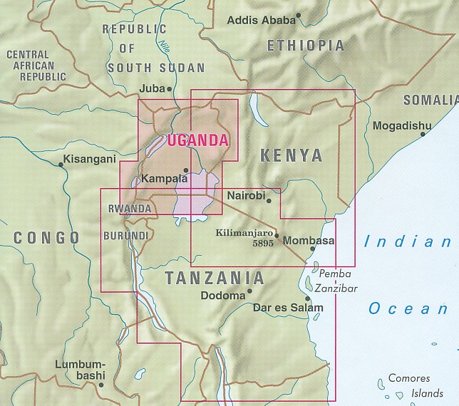 Handige overzichtelijke landkaart van Uganda, praktisch als de digitale kaarten mij in de steek laten.