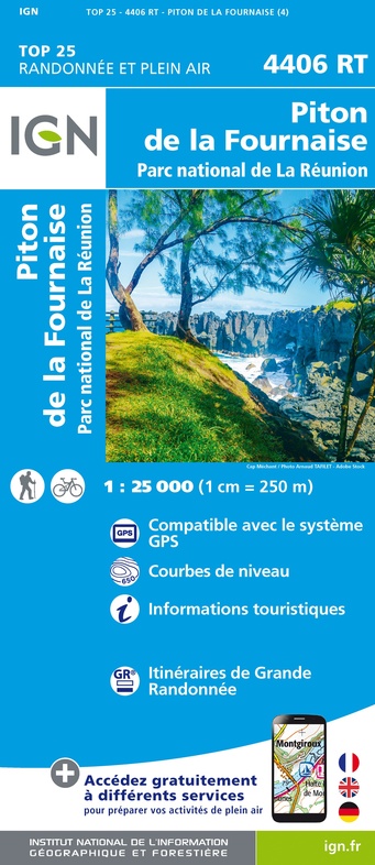 De beste en meeste gedetailleerde kaarten van La Reunion. Het eiland is opgedeeld in 6 kaarten op schaal 1:25.000. Het is de wandelkaart die de perfectie benadert! Werkelijk alle topografische details zijn er op te vinden; van hoogtelijnen tot aan bruggetjes en allerlei wandelpaden. Daarnaast hebben de makers een flinke dosis toeristische informatie op de kaart verwerkt: campings, gites d étape, restaurants en ingetekende doorgaande wandelpaden, de grandes randonnées. Het kleurgebruik is geweldig met schaduwzijdes, bos, weiland, etc goed te onderscheiden. De kaart is uitgevoerd met raster van graden, dus deze is GPS - toepasbaar!