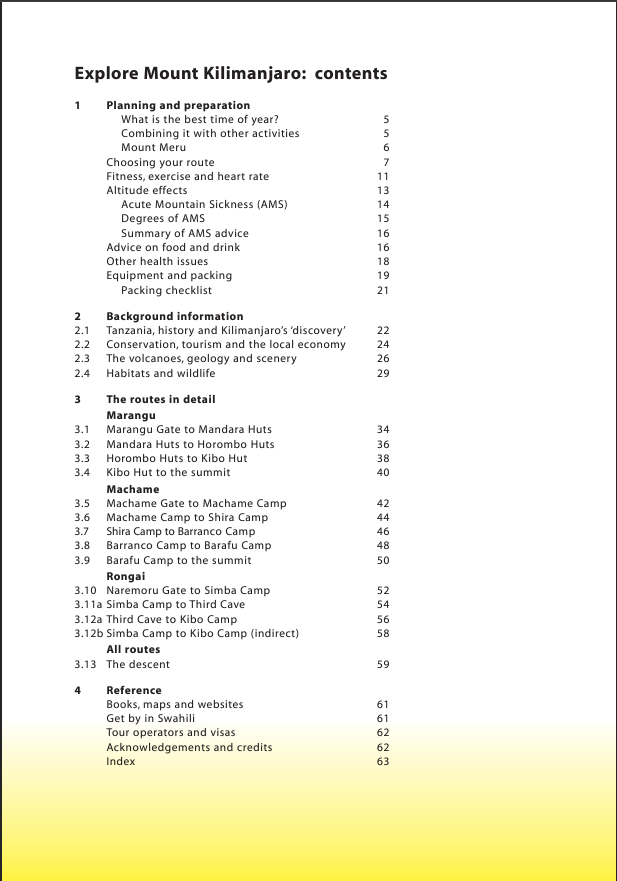At 5895 metres (nearly four miles) above sea level, the summit of Mount Kilimanjaro is the highest point on earth to which you can walk. This is a mountain of contrasts and extremes. You start from tropical rain forest and finish in arctic conditions, passing through a landscape formed by ice and fire. Yet any well-prepared walker with enough determination may be able to climb Mount Kilimanjaro, to reach 'the roof of Africa'.To climb Mount Kilimanjaro, the greatest challenge you face is the huge altitude gain. The author's advice on preventing altitude sickness is based on medical research, and on her own experience of successful ascents by four different routes. This new 4th edition of Explore Mount Kilimanjaro has been fully updated to cover the Lemosho/Shira routes, and includes: