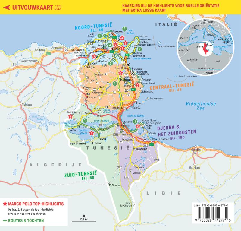 Marco Polo reisgids voor Tunesië! Handig pocket formaat, boordevol informatie, met uitneembare kaart achter in het boek en plattegronden verspreid door de gids. Met Bucketlist, ‘insider tips’ om dit fascinerende Noord-Afrikaanse land écht te ontdekken, de TOPlijst van bezienswaardigheden in één oogopslag, up-to-date informatie in overzichtelijke hoofdstukken: sightseeing, eten & drinken, winkelen, uitgaan, verblijf, routes & tochten, voor kinderen, feesten, festivals & evenementen, internet tips, praktische info van a tot z, een taalgidsje, plattegronden en straatnamenregister.