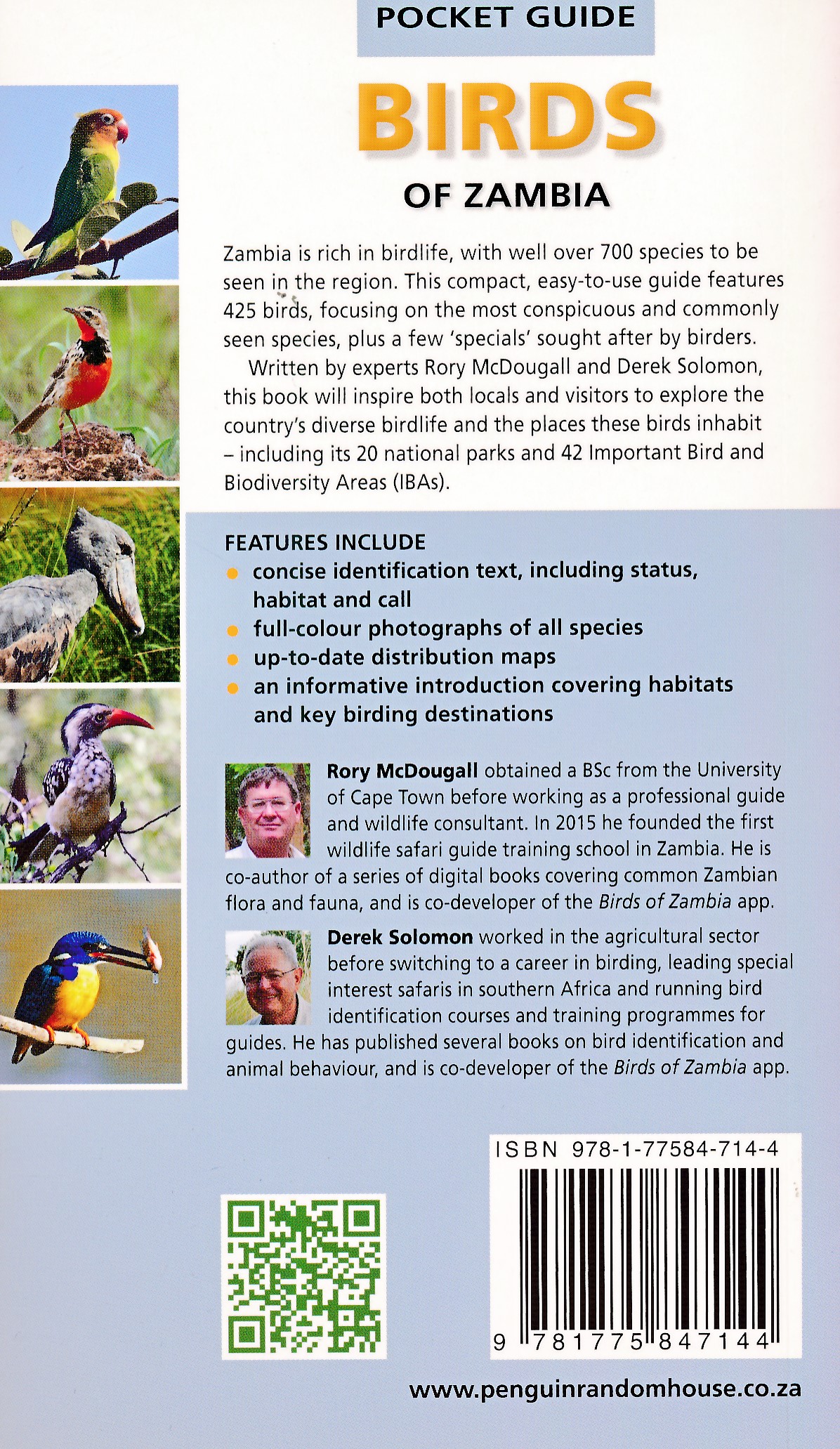 This pocket-sized, easy-to-use guide to the birds of Zambia features 425 birds likely to be seen in the region, plus a few 'specials' sought after by birders. Concise identification text for each species contains key ID pointers and a description of their call and favored habitat. The accounts are accompanied by full-color photographs illustrating diagnostic features and plumage differences (such as those between male and female or breeding and non-breeding birds). Distribution maps are provided for all featured species. An informative introduction comprises a habitat map, glossary, labelled bird diagrams, and descriptions of the habitats in Zambia and the bird species to be seen there. Light and handy for use in the field, this will be an excellent guide for local birders and visitors alike.
